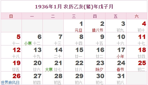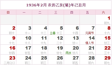 正如上面所说的,生肖纪年法是以农历立春为新年的开始,而1936年立春时间为1936年2月5日。