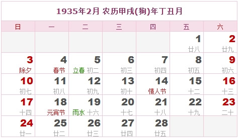 正如上面所说的,生肖纪年法是以农历立春为新年的开始,而1935年立春时间为1935年2月5日。
