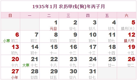1935年1月1日-1935年2月4日为农历甲戌狗年