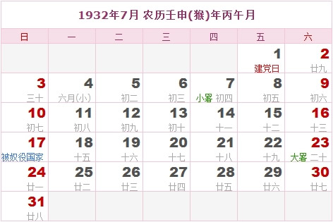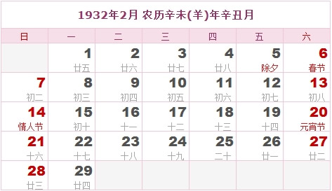 正如上面所说的,生肖纪年法是以农历立春为新年的开始,而1932年立春时间为1932年2月5日。