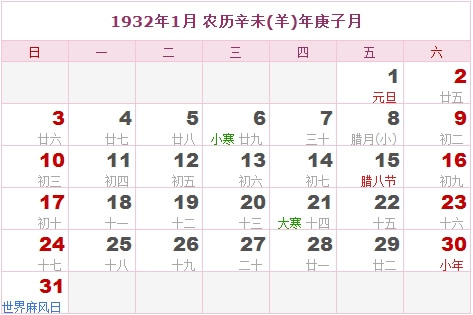1932年1月1日-1932年2月4日为农历辛未羊年