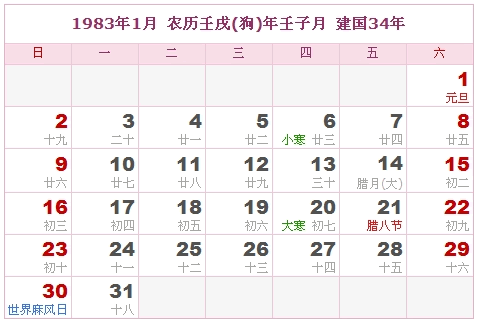 1983年1月 农历壬戌(狗)年壬子月 建国34年