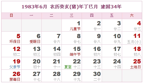 1983年6月 农历癸亥(猪)年丁巳月 建国34年