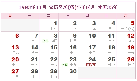 1983年11月 农历癸亥(猪)年壬戌月 建国35年