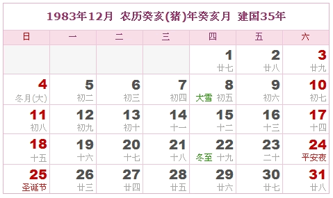 1983年12月 农历癸亥(猪)年癸亥月 建国35年