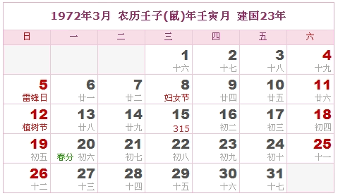 1972年3月 农历壬子(鼠)年壬寅月 建国23年