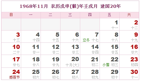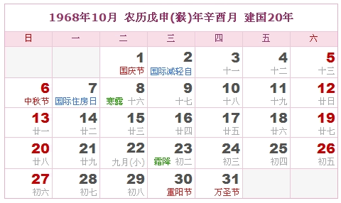 1968年11月 农历戊申(猴)年壬戌月 建国20年
