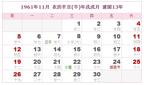 1961年11月 农历辛丑(牛)年戊戌月 建国13年
