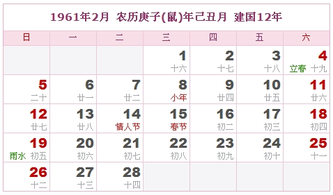 正如上面所说的,生肖纪年法是以农历立春为新年的开始,而1961年立春时间为1961年2月4日。