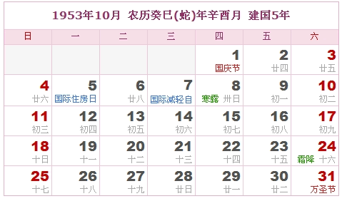 1953年10月 农历癸巳(蛇)年辛酉月 建国5年