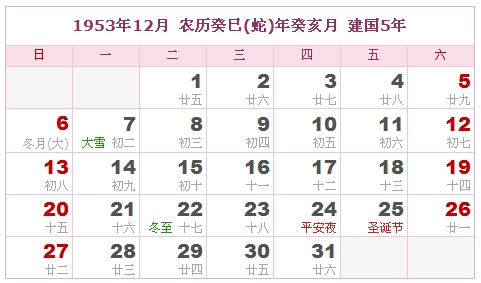 1953年12月 农历癸巳(蛇)年癸亥月 建国5年