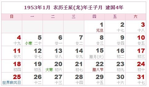 1953年1月 农历壬辰(龙)年壬子月 建国4年