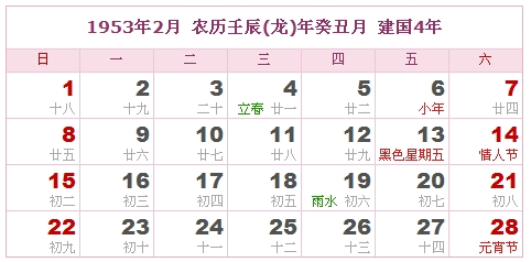 正如上面所说的,生肖纪年法是以农历立春为新年的开始,而1953年立春时间为1953年2月4日。