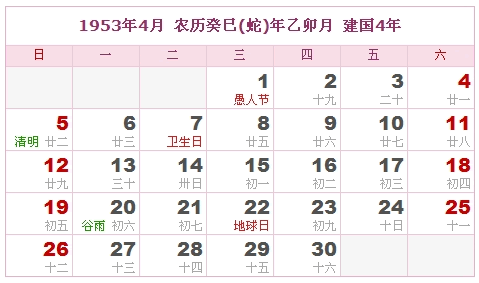 1953年4月 农历癸巳(蛇)年乙卯月 建国4年