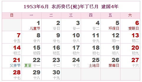 1953年6月 农历癸巳(蛇)年丁巳月 建国4年