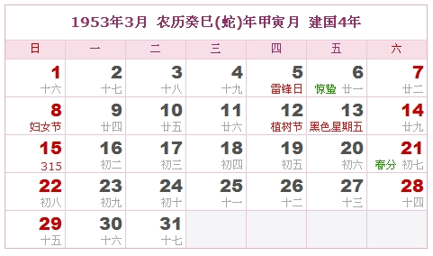 1953年3月 农历癸巳(蛇)年甲寅月 建国4年