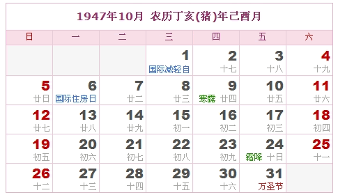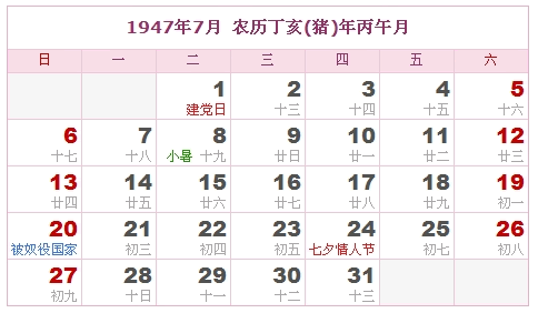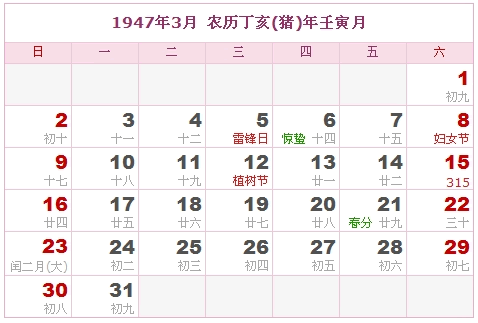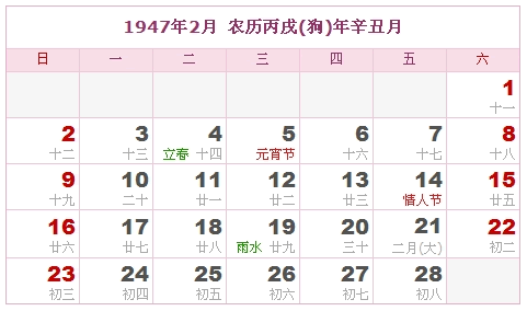 正如上面所说的,生肖纪年法是以农历立春为新年的开始,而1947年立春时间为1947年2月4日。