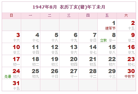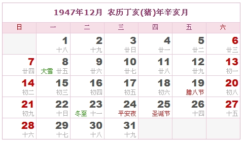 1947年2月4日-1947年12月31日为农历丁亥猪年