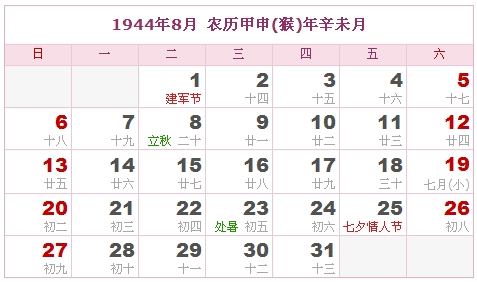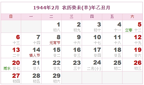 正如上面所说的,生肖纪年法是以农历立春为新年的开始,而1944年立春时间为1944年2月5日。