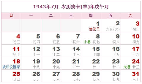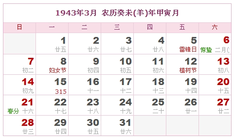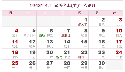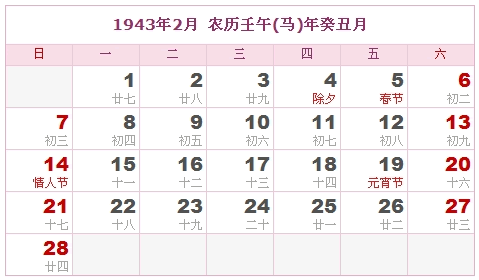 正如上面所说的,生肖纪年法是以农历立春为新年的开始,而1943年立春时间为1943年2月5日。