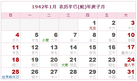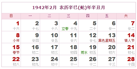 正如上面所说的,生肖纪年法是以农历立春为新年的开始,而1942年立春时间为1942年2月4日。