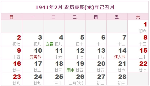 正如上面所说的,生肖纪年法是以农历立春为新年的开始,而1941年立春时间为1941年2月4日。